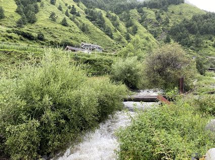 六匹馬,馱著我們,還有我們的行李丁丁當(dāng)當(dāng)走向立乃村后的大山腳下,走進(jìn)蜿蜒崎嶇的峽谷,周遭大山嵯峨。谷中一道河水清冽淌出,水底的黑白石子在透明的水波下顫動(dòng)著。河兩岸長滿了成片濃密的鳶尾,因?yàn)楹洌ǘ湎∈?。幾棵又幾棵開滿白色碎花的竇潔子樹臨水生長,初秋時(shí)節(jié),樹上就會(huì)結(jié)滿色澤美麗的紫色小漿果,引來林間的鳥雀啄食,牧人遇見了也去歡喜地摘來吃。馬匹不時(shí)去渡過一座搭建在河水上的簡易木橋,接著就會(huì)迎來一段向上的坡路。越往峽谷深處,鳶尾花就越發(fā)稀少了,我們開始朝著山道攀行。 南杰騎在最前面的一匹馬上引路,雍貝騎在她身后的那匹馬上,她偶爾回頭看看雍貝和雍貝之后的我一眼,目光又回落到雍貝臉上,內(nèi)心升起喜歡,面目就顯出安適和坦然。吉美騎在最后一匹馬上看守我身后那兩匹馱著行李的馬,怕它們丟失了東西。馬背上的雍貝,沒有顯出新奇或是驚慌,就只那樣的穩(wěn)重騎行,仿佛生來就是一位騎手。