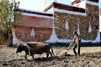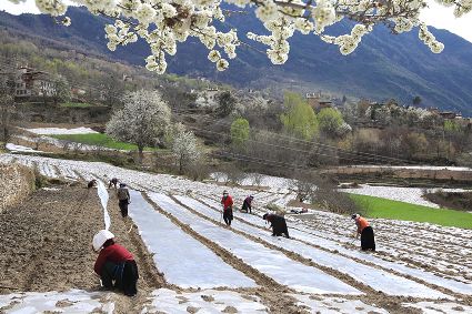 “春耕、夏耘、秋收、冬藏”是大地的“四季歌”。幾場春雨過后,大渡河流域氣溫逐漸回升。時下,穿行于我州 大渡河流域廣袤的山川田野間,到處是一派搶農(nóng)時的忙碌場景。沉寂的田野,開始熱鬧起來。農(nóng)戶們?yōu)榱艘荒甑暮檬粘?,背上背簍、帶著鋤頭、趕著耕牛,走進阡陌縱橫的田野,鉚足“?!眲艃海?、修剪、澆水、除草,田野間好不熱鬧。一幅忙春耕、勤備耕的“春耕圖”已在甘孜大地徐徐展開。