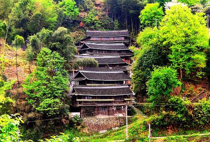 一眼的山,一眼的綠,一眼的云霧,一眼的煙雨,從吊腳樓木格花窗亮麗妖嬈走出來。經(jīng)過吊腳樓的旅人,不經(jīng)意就會(huì)站成一棵長(zhǎng)腳的樹。