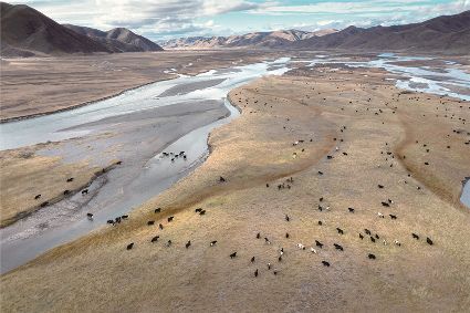 仿佛聽到了無人機(jī)下哞哞的牛群鳴叫,那一抹陽光來得正是時(shí)候,陽光送來的何止是溫情,還有一種催促前行的呼喚。