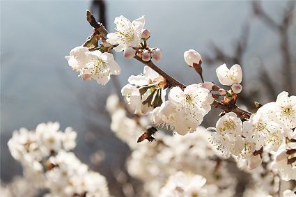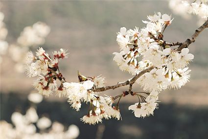 說(shuō)起三月瀘定的美,可不止油菜花。在冷磧鎮(zhèn),純白如雪的櫻花也競(jìng)相開(kāi)放。它們花團(tuán)錦簇,映著藍(lán)天,頗為壯觀。櫻桃花林中,簇簇花兒綴滿枝頭,潔白若仙。微風(fēng)吹過(guò),滿樹(shù)搖曳,像極了千萬(wàn)個(gè)精靈在春色中舞蹈。