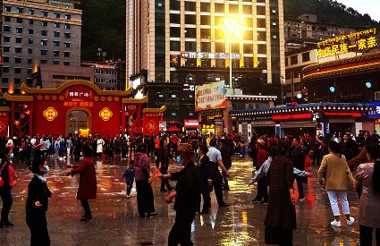 月光如水,飛珠濺玉的銀浪渲染滿天星辰,分不清人間天堂抑或是太虛幻境。閃爍的流光,如玉帶纏繞火樹銀花,明珠的光彩盡現(xiàn)川西高原情歌城。