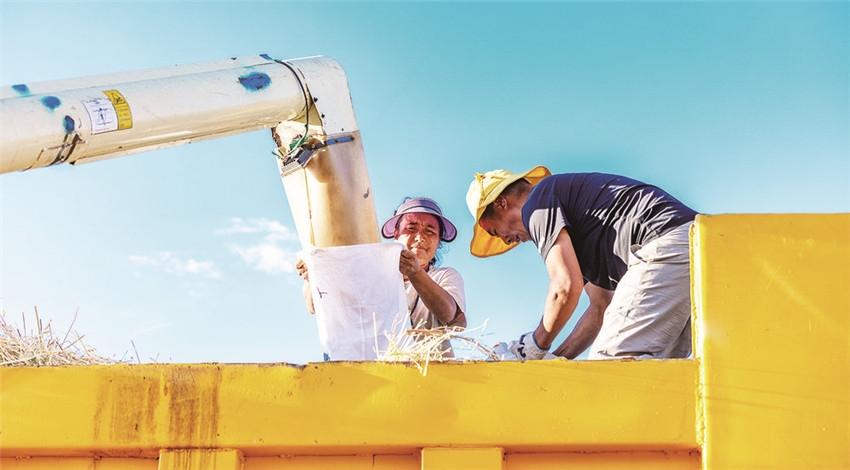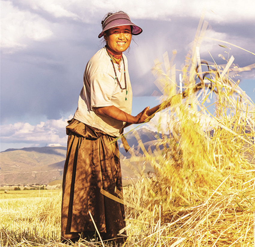 甘孜縣是我州的農(nóng)業(yè)大縣,也是全國(guó)青稞商品糧基地之一,素有“康北糧倉(cāng)”的美譽(yù)。日前,在甘孜縣仁果鄉(xiāng)青稞收割現(xiàn)場(chǎng),一望無(wú)垠的田地里麥浪滾滾、麥香四溢,一臺(tái)臺(tái)聯(lián)合收割機(jī)在金色的青稞地里來(lái)回馳騁,時(shí)不時(shí)停下來(lái)“吐出”金燦燦的青稞,農(nóng)戶們的臉上露出豐收的喜悅笑容。