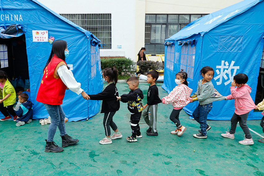 在社會(huì)各界搶險(xiǎn)救援隊(duì)伍的鼎力支援下,災(zāi)區(qū)的道路、電力、通信等逐漸恢復(fù),生活逐步走上正軌;在愛心志愿者的安撫關(guān)心下,孩子們走進(jìn)“帳篷課堂”,朗朗書聲、歡快笑聲日漸增多。