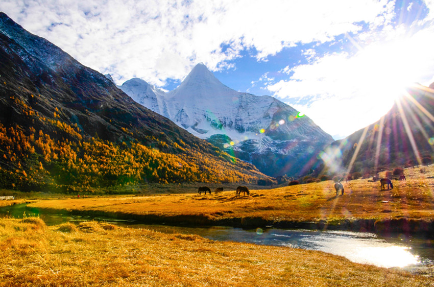 秋天來(lái)臨之際,在甘孜15.37萬(wàn)平方公里的土地上,每一處都布滿了萬(wàn)紫千紅的秋色,每一寸土地都爭(zhēng)先恐后地散發(fā)著濃濃的秋意。