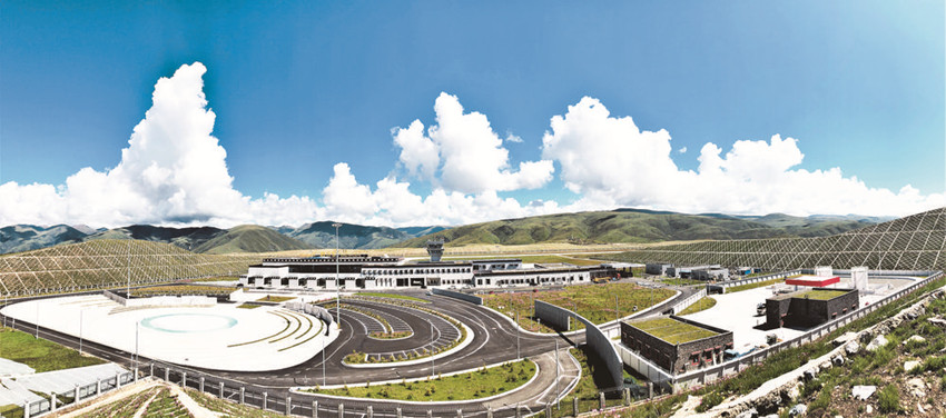 飛機(jī)還在空中盤旋,就能看到格薩爾機(jī)場大面積的綠植,清新養(yǎng)眼。這座高原機(jī)場很有意思,樓體頂層覆蓋植物土,并在室外區(qū)域大面積綠化,讓游客身在空中就能看到大片高原綠,配上兩旁的皚皚雪山,隨手一拍都是大片。