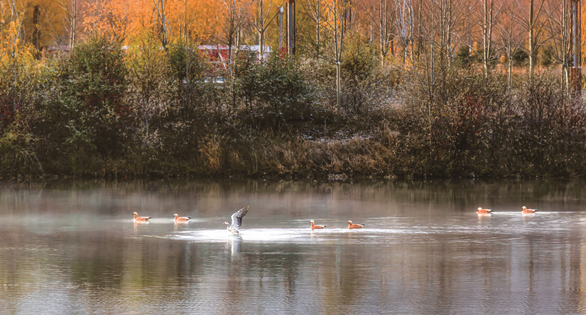 近年來,到珠姆湖越冬的候鳥越來越多,有赤麻鴨、綠頭鴨、秋沙鴨、斑頭雁、鸕鶿等,讓冬季的雅礱林卡濕地公園熱鬧非凡。