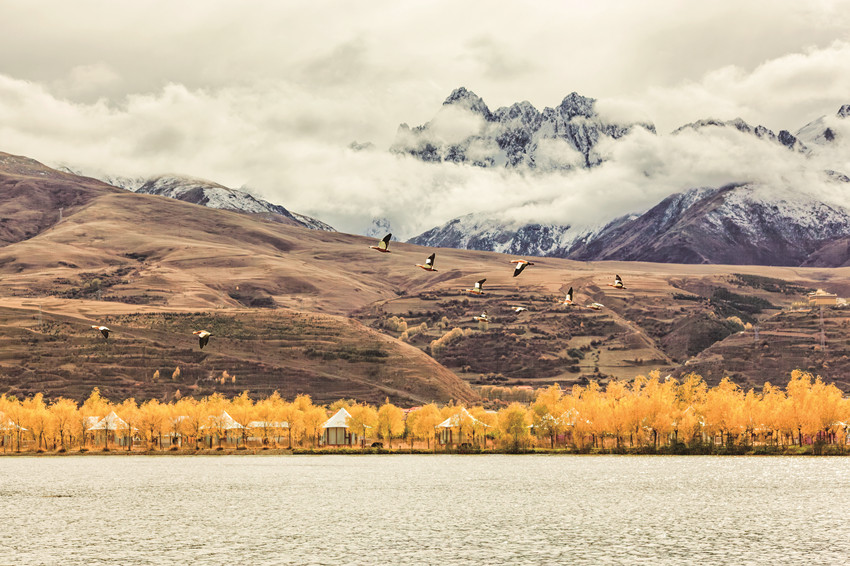 除了巍峨的雪山與彩林作伴,不少越冬的候鳥也飛抵珠牡湖。金色彩林倒映在清澈如鏡的湖面上,不時(shí)有候鳥游過,激起層層漣漪,為珠牡湖增添了不少生機(jī)與趣味。