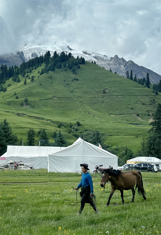 不管然日卡村還是則巴村,村民的勤勞善良也一樣讓人印象深刻。然日卡村的藏族姑娘丁真拉珍剛過18歲,卻經(jīng)常像個將軍去山上放牧和指揮100多頭牦牛,如果時間允許,她還去挖蟲草和松茸,但同時又在村里當(dāng)旅游向?qū)?,騎上摩托、牽上馬匹帶游客四處參觀,每天忙得不亦樂乎;同樣是然日卡村的小伙澤仁剛?cè)⒘宋棠饭媚铮麄儚膫鹘y(tǒng)的放牧中抽身出來,與村里許多年輕人一樣,一心一意打造鄉(xiāng)村民宿,用勤勞的雙手走上了一條嶄新的致富路;而則巴村的帥小伙甲他,今年也在村子里建起了屬于他們一家的“奔然甲他”民宿,奔然是村前一座小山的名字,甲他相信他們的日子一定如山一般堅實越過越好。