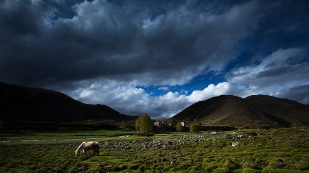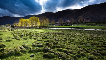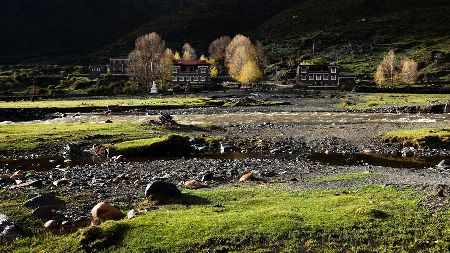湛藍(lán)的天空下,雄鷹在盤旋,牛羊在安詳?shù)芈匠圆?,靜靜的小河在山邊蜿蜒流淌,充滿綠意的白楊樹在風(fēng)中搖曳,藏式民居不時(shí)升起縷縷炊煙,寂靜、空曠的原野深處偶爾會傳來幾聲狗叫高原的陽光又賦予這幅風(fēng)景畫凝重的色彩這樣的畫面叫人心醉,讓人留戀忘返從折多山腳下至新都橋鎮(zhèn),再至塔公草原,處處都是入畫的美景,不愧稱為“攝影家的天堂”。