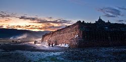 石經(jīng)城位于距石渠縣城呢呷鎮(zhèn)東北約90公里處的阿日扎鄉(xiāng)境內(nèi),坐落在雅礱江支流洛曲河西岸一處兩山相望的草原間,背靠一座平緩、渾圓的山丘,前面是一望無際的草原,由于草原極為遼闊,遠遠望去,整座城并不顯得特別雄偉、壯觀,但走近細(xì)看,這座用一塊塊刻滿經(jīng)文和佛像的石片、石塊在漫長歲月中逐漸壘砌起來的石城,所蘊含的厚重與蒼茫,堅韌與神秘,讓我想起荷爾德林所說的“那些四處飄游的分散的力量,都匯聚在一個黃金般的中心”。