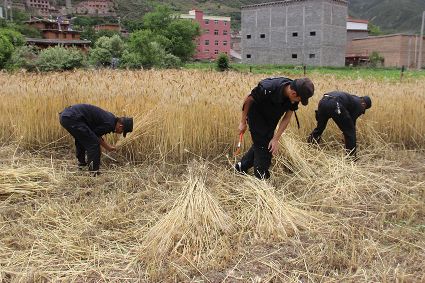 “不能讓鄧珠家成熟了的小麥爛在地里。”近期,巴塘縣陰雨天氣給當(dāng)?shù)卮迕袷崭钚←湈聿槐恪T摽h夏邛派出所民警自發(fā)來到夏邛鎮(zhèn)河西村特困戶鄧珠家田地,以最快的速度幫助收割、捆綁、脫粒等一系列搶收工作。據(jù)悉,夏邛派出所民警在開展“一標(biāo)三實”工作時,將當(dāng)?shù)乩щy戶、殘疾戶、五保戶等缺少勞動力的家庭銘記在心,每逢播種秋收都會進行幫助。