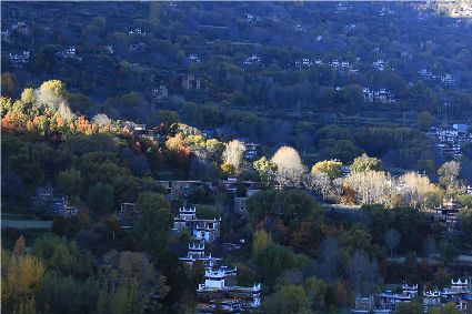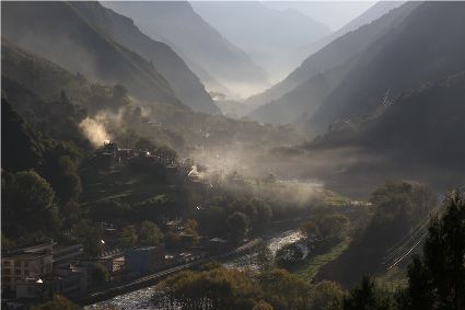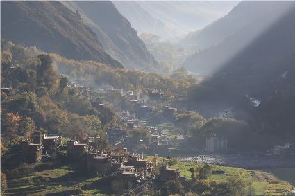 落日將最后一道霞光在山尖劃過,暗夜便裹挾這寒意搖動(dòng)起山林中的樹木。風(fēng)漸緊,那已經(jīng)稀稀落落的樹葉隨著風(fēng)的韻律,跳起歡快的鍋莊,仿佛在告別這一年的繁華。突如其來的大雪,給丹巴的二月涂上白色的記號(hào)。從山尖到院前的樹上,一溜兒雪白,正應(yīng)了“忽如一夜春風(fēng)來,千樹萬(wàn)樹梨花開”的情景,讓人忍不住伸出手指看看這花是真是假。大雪過后,陽(yáng)光如約而至撒滿藏寨,金色陽(yáng)光和蒸騰的白霧縈繞在雪白的山頭,與山下的古碉藏寨,河畔的清流巧妙地構(gòu)成一幅絕美畫卷,讓人仿佛身處仙境。吸足了養(yǎng)分的柳樹終于抽出綠芽送來春天的信號(hào),那柳條兒在細(xì)風(fēng)吹拂下宛如少女對(duì)鏡梳妝,在陽(yáng)光下顯得無比溫柔,讓人不禁想貼近它們,感受這溫暖又靜謐的溫柔。