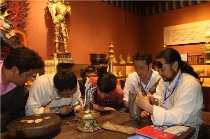 在這次雕塑作品展中,常常能聽到參觀者的感嘆,關(guān)于“漂亮”、“精致”、“出人意料”之類的贊美聲不絕于耳,但除了傳統(tǒng)民間手藝的傳承人,普通大眾對(duì)民間手工藝背后的文化、歷史知之甚少。正如格薩爾彩繪石刻傳承人巴德所說(shuō):“我來(lái)這里的目的,是為了讓更多人尤其是年輕一代親眼看看我們民族手工藝的制作過(guò)程,對(duì)我們自己的文化多一些了解?!?/span>