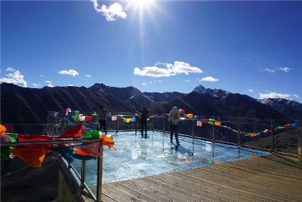 景區(qū)共有2個觀景平臺,“群峰為屏觀景平臺”和“俄米曲觀景平臺”,兩個觀景平臺都是觀賞貢嘎群山的絕佳觀賞點(diǎn),視野廣闊,在這里可以欣賞到藍(lán)天白云,光影交錯,巍峨的貢嘎群山伴隨著連綿白雪顯得格外壯觀震撼。