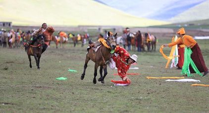 7月23日,四川甘孜藏族自治州理塘縣村戈鄉(xiāng)賽馬活動開始,牧民們在馬背上一顯身手。每年藏歷六月,當(dāng)草原上格桑花盛開的時候,四川省理塘縣24個鄉(xiāng)(鎮(zhèn))就會按照習(xí)俗舉辦隆重的賽馬會來拜祭神山,慶祝豐收。迄今有400多年歷史的賽馬分為耐力賽、小走賽、馬術(shù)賽等,其中最為精彩的是馬術(shù)賽:馬肚藏身、馬背倒立、飛騎射擊、拾哈達等,驚險刺激。2008年6月,此項活動被列入四川省級非物質(zhì)文化遺產(chǎn)保護項目。(朱虹 葉強平)