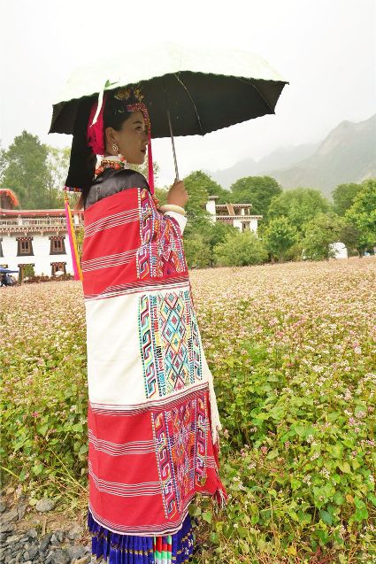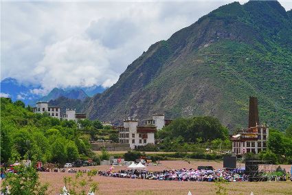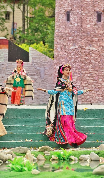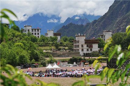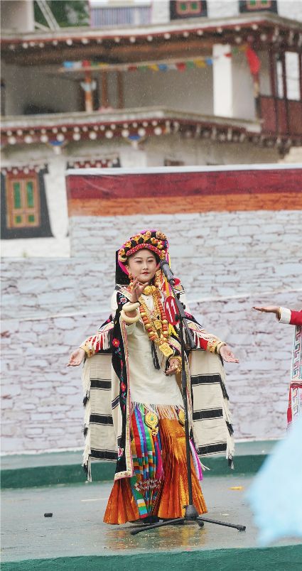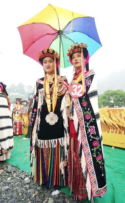 比賽開始不久,現(xiàn)場下起了小雨,但絲毫沒有影響熱烈氣氛。臺(tái)上的佳麗們,略施粉黛,穿著承載著嘉絨風(fēng)情文化的民族盛裝,自我介紹,優(yōu)雅展示。臺(tái)下,則是鄉(xiāng)民齊聚,熱情高漲。大家紛紛到場,為佳麗們加油助威。據(jù)介紹,丹巴出美女始于漢代的東女國時(shí)期。古時(shí)每年農(nóng)作物收獲的時(shí)節(jié),丹巴各村各寨都要舉行盛大的選美和祭祀活動(dòng)。