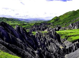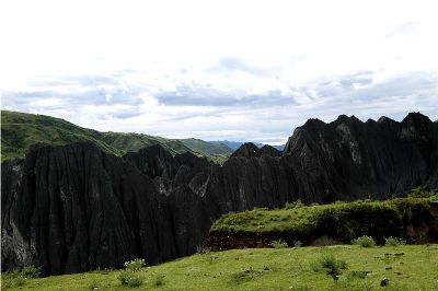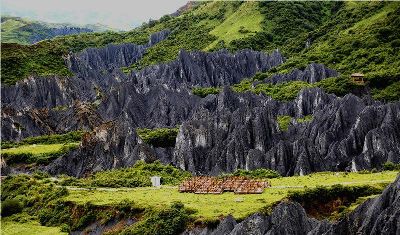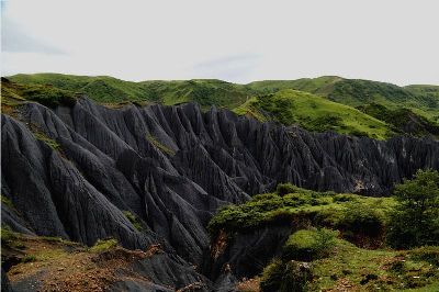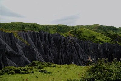 墨石公園,是中國(guó)唯一高原石林景觀,被譽(yù)為“中國(guó)最美景觀大道第八美 ”。受第四紀(jì)新構(gòu)造運(yùn)動(dòng)影響,隨著青藏高原的隆起,鮮水河斷裂帶中的巖石受到擠壓、剪切、破碎、糜化,形成糜棱巖石林。石林含丐鹽,受空氣濕度影響,干燥季節(jié)呈淺灰色、淺藍(lán)色,濕潤(rùn)季節(jié)呈滄黑色,因此又稱(chēng)之為變色石林。