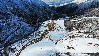 瞰康定甲根壩雪景賞亞洲最大鈣化灘