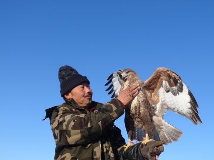 “古時(shí)候鷹做為人類的朋友,幫助主人捕野兔捉野雞?!庇?xùn)鷹人說。