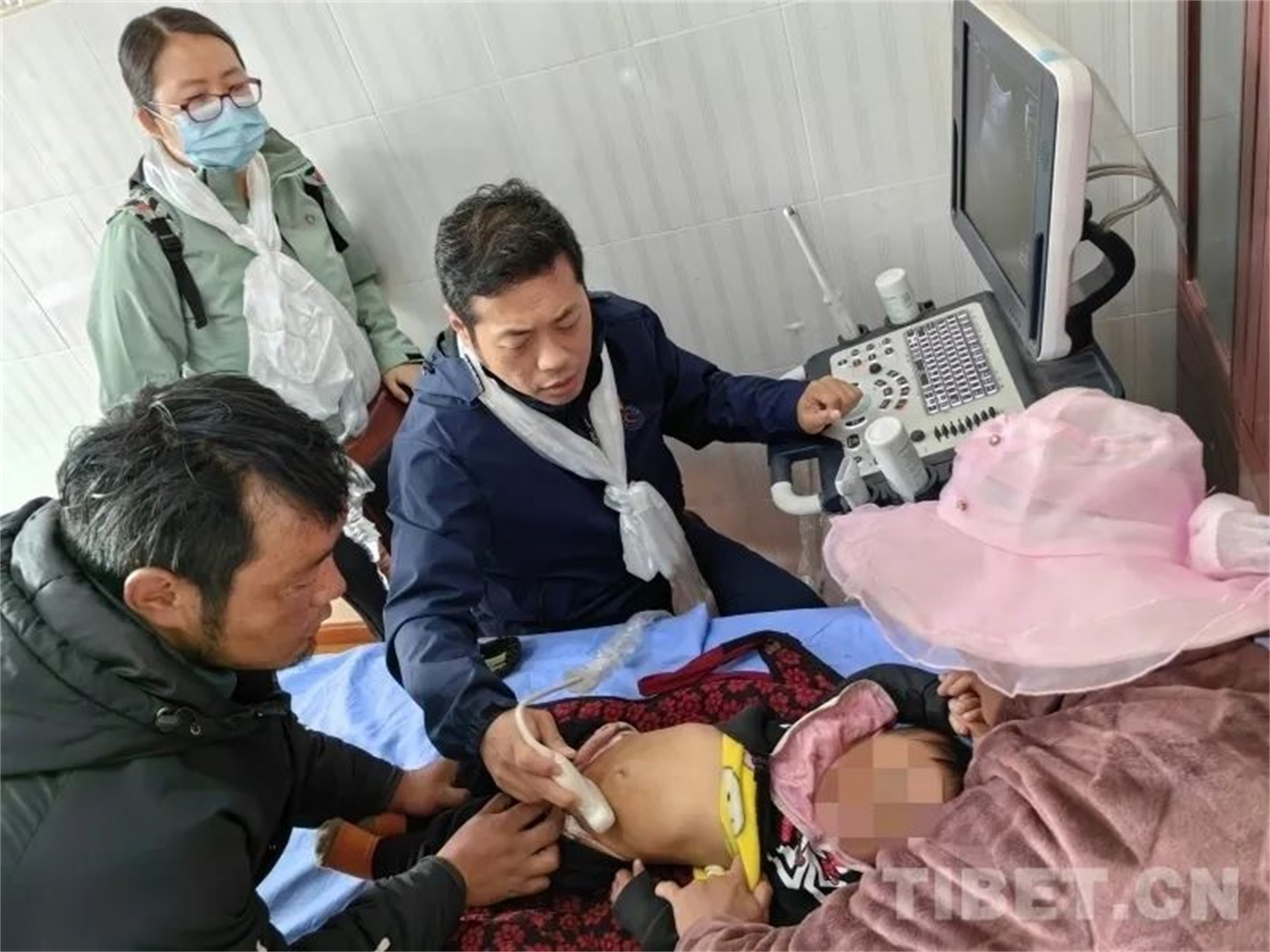 圖為北京大學人民醫(yī)院急診科副主任遲騁為患兒做B超。 楊小軍 攝