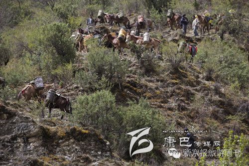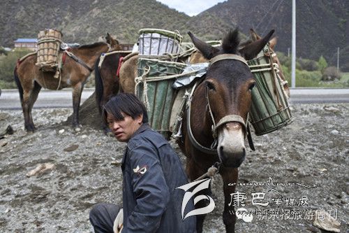 拉沙石的馬幫。