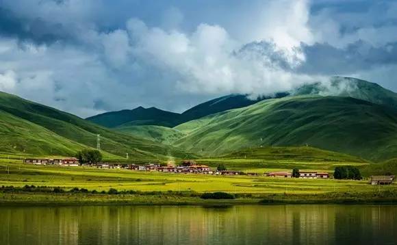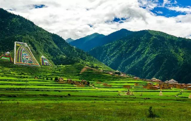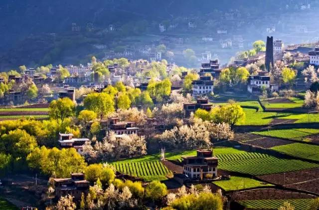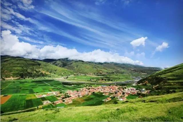 村子坐落在兩座大山之間的平原地帶,夏天和秋天是村子最美的時候,夏天村子里的青稞綠油油的一片,秋天變成一浪又一浪的金燦燦,甚是壯觀…