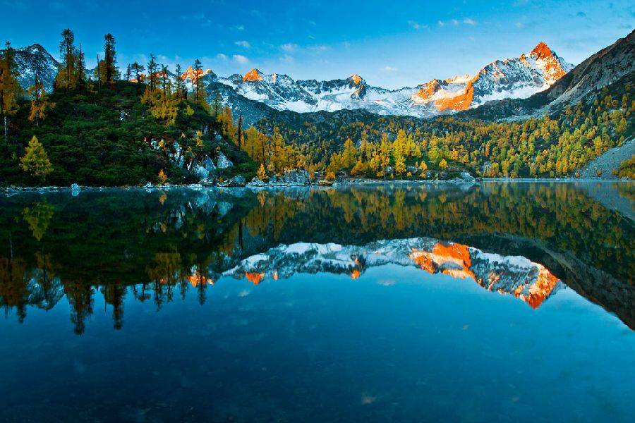 黨嶺的美,體現(xiàn)在每一個角落,雄奇壯美的雪峰、滿山遍野的彩林、星羅棋布的高山湖泊、原始天然的露天溫泉、蒼翠茂密的原始森···