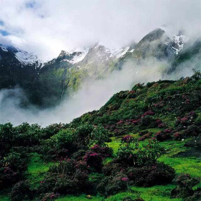 雅家埂位于海螺溝范圍內(nèi),四周環(huán)繞著終年不化的雪山、瀑布、草甸、杜鵑花、冷杉林。冰川河岸上布滿了數(shù)不清的紅石,與清洌的流水相伴順流而下,讓人感嘆大自然的造化神奇。孫儷鄧超主演的仙境電影《畫壁》,就曾在此取景拍攝。