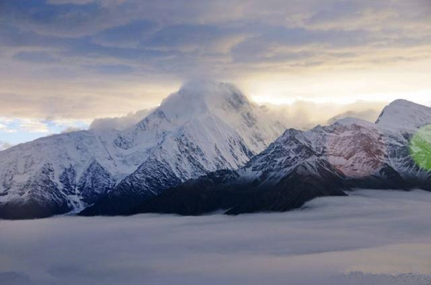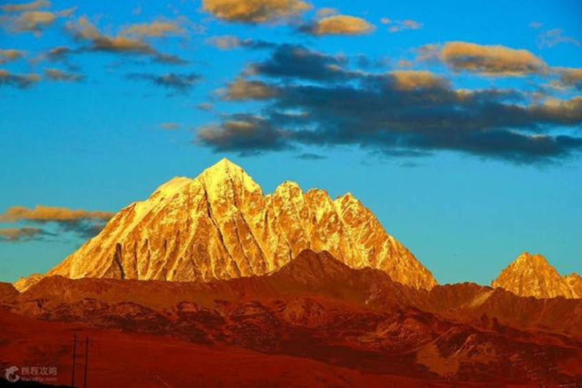 貢嘎山位于康定城南約55千米處,“貢嘎”為藏語“雪白”之意。貢嘎山險峻挺拔,峰項(xiàng)有70平方米的平臺,終年積雪覆蓋,晴空萬里時,閃耀著熠熠光芒,瑰麗壯觀。