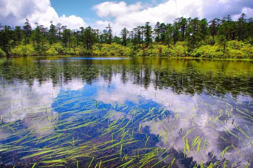 繼續(xù)前行,下一站既是木格措。木格措漢名:野人海,水源來自于身后女媧雪山的積雪融水,水質(zhì)清冽,能見度極高,湖四周群山環(huán)抱,紅海、黑海、白海等幾十個小海子圍繞在周圍,如眾星拱月般。木格措風(fēng)光秀美,“臥虎觀月”、“雙霧墜?!钡染坝^最為獨(dú)特。