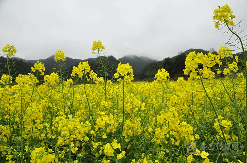 春天剛起頭是油菜花開得最繁的時節(jié),金黃色的油菜花大大咧咧地擠滿了山坡。她的美麗,不必華美的詞藻,簡簡單單地鋪在山野上,倒更像是頂頭的白云一般,天真無邪。油菜花漫漫地在田間野里站成一道道風(fēng)景,山腳山腰,都是一幅極美極佳的畫。猜猜這是哪里?原來,這里是川西高原上的瀘定城,一個因為“飛奪瀘定橋”而著名的城市,一個紅色旅游、英雄的故鄉(xiāng)。