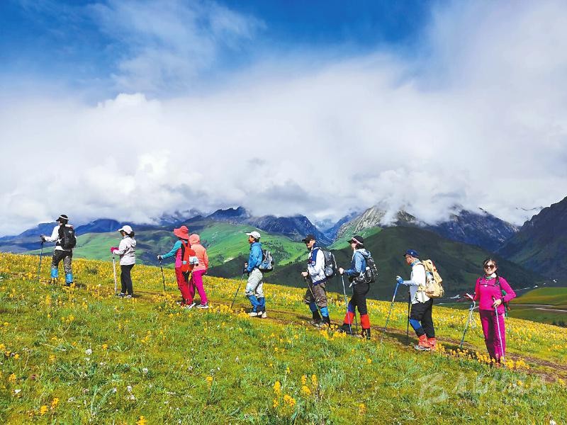本網訊 8月2日,來自全國各地的游客在理塘縣格聶景區(qū),徒步體驗格聶神山秘境之旅。
