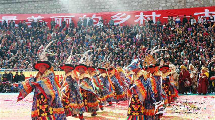 十七世紀(jì)時(shí),丹巴巴底大坪村阿洛、益西降稱(chēng)等喇嘛去西藏學(xué)經(jīng),求學(xué)期間,征行九世班禪同意在日喀則扎什倫布寺學(xué)習(xí)藏戲,學(xué)了《呷拉翁布》(另名《卓瓦桑姆》)和《甲扎共龔》(譯為《文成公主》)二劇的唱腔、鼓鈸奏法、表演技巧,帶回巴底黃金寺,挑選寺中30余名僧徒成立黃金寺藏戲團(tuán)。此后,每年都在規(guī)定時(shí)間演出。丹巴中路藏戲,是中路寺廟喇嘛去西藏學(xué)經(jīng)時(shí)帶回的。