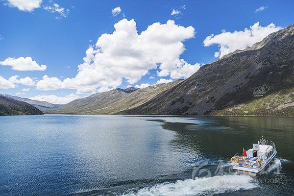 坐船游湖是感受木格措風光最好的方式。坐在船艙看在那煙波浩渺波光粼粼的湖面,使人感到一種置身世外桃源般的感受,陶醉在這沒有粉飾的質樸圣潔的美中,忍不住想放聲高歌,又怕破壞了這和諧的氣氛。