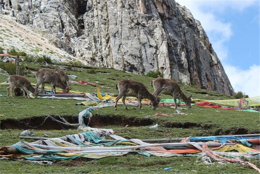 森林中成群結(jié)隊的盤羊是扎嘎神山的一道風(fēng)景,這里的盤羊遇人不驚,特別是與寺廟的僧人和睦共處,如果你前往扎嘎神山游玩還可看見盤羊在僧人手掌上舔食的動人情景。
