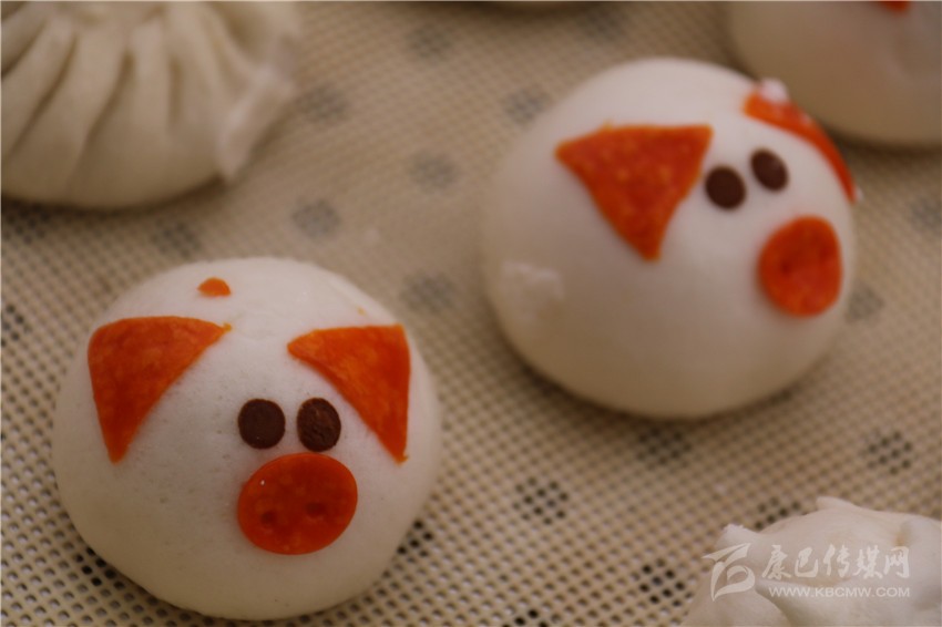 “這個(gè)包子也長(zhǎng)得太可愛了吧!”記者順著旁邊的驚呼聲看去,五歲的肖紅拿著一個(gè)做成小豬樣的包子對(duì)著她奶奶說。趕緊走近店里,記者也來了份兒奶黃餡兒的卡通小豬包子,一口咬下,奶黃順著缺了的口子流出來,趕緊吸了一口,甜甜的味道瞬間在舌尖化開。為了滿足記者的好奇心,老板介紹說:“將面團(tuán)捏好搟薄,再包入餡,收口朝下,像包包子那樣捏好口,捏出有點(diǎn)像豬的型狀,再撕一點(diǎn)黃色面團(tuán)做個(gè)豬鼻子,用一根筷子按下去成兩個(gè)鼻孔,再捏兩只耳朵和一根尾巴,準(zhǔn)備些黑芝麻,做眼晴,拿根筷子點(diǎn)點(diǎn)水沾一個(gè)芝麻放在豬身上,可愛的卡通小豬包就做好了?!钡赇伹皵D滿了小朋友,老板告訴記者:“這種卡通包子之所以受小朋友的喜歡不僅是因?yàn)槠淇蓯鄣目ㄍㄍ獗恚椅覀兯械目ㄍò羽W兒都是甜的。我們精準(zhǔn)定位,投孩子們所好,取得的成效還不錯(cuò)。這次來參加美食節(jié),只帶來了小豬和刺猬兩種卡通形象的包子,賣得挺好,準(zhǔn)備在接下來的幾天將小猴子等卡通形象的包子也帶過來?!?/p>