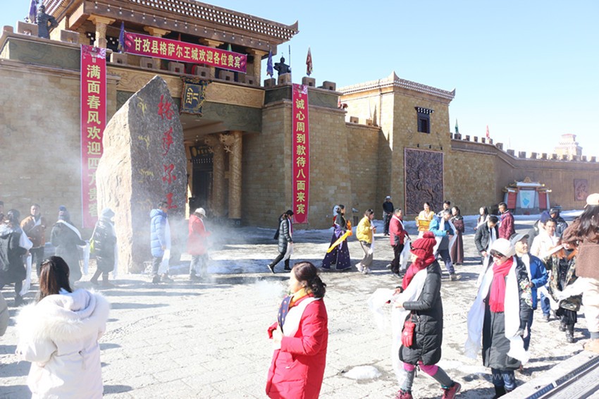 寒風(fēng)不減游興,冬日游王城別有一番風(fēng)情,游客們徜徉在格薩爾王城獨特建筑中,游覽了嶺國圣泉、千年神石、卓陵湖、格薩爾祈愿地、阿尼瑪卿雪山、阿克晁通寨子、更嘎尼瑪寨子等景點,并親自體驗景觀小品,每到一處大家都會用手機(jī)記錄下精彩瞬間,有的曬個朋友圈、發(fā)個抖音小視頻,有的干脆在王城里來個直播,領(lǐng)略格薩爾文化的魅力。