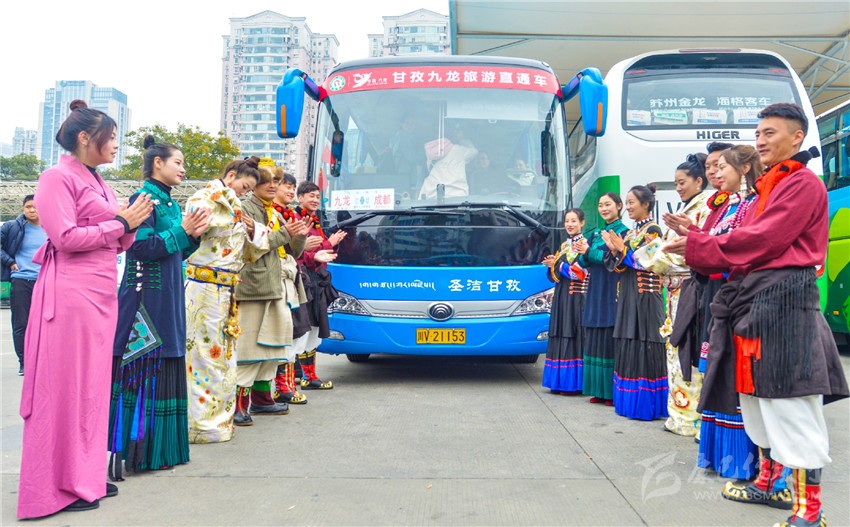 景區(qū)直通車授牌儀式和自駕游車隊授牌儀式也是本次推介會的亮點。兩項儀式旨在進一步方便廣大游客到九龍旅游,并開啟成都直通九龍旅游及運輸融合發(fā)展的歷史征程?,F(xiàn)場,貼有“穿越藏彝走廊,體驗民俗風情”和“甘孜九龍旅游直通車”車標的汽車引得不少人注目,有的還當即向工作人員咨詢票價、路線。
