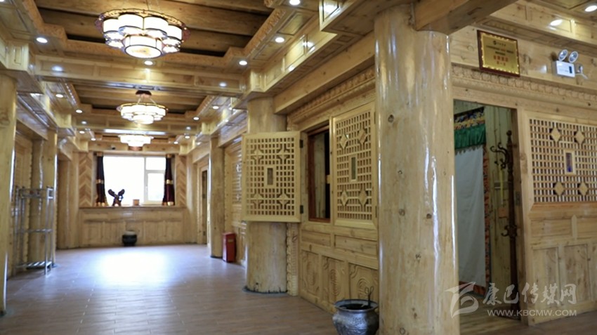 這幢民“居”之所以是“宿”,是因?yàn)樗牡讓颖辉O(shè)計(jì)建造成為了11間客房,安裝現(xiàn)代化設(shè)施后用于旅游接待。而二樓則為臥室、經(jīng)堂、客廳、貯藏室、廚房、走廊和陽(yáng)臺(tái)等,在建造中最難的一道工序便是室內(nèi)裝修的雕刻和繪畫(huà),此二門(mén)藝術(shù)可謂“崩科”之精華所在,極具康巴文化特色。