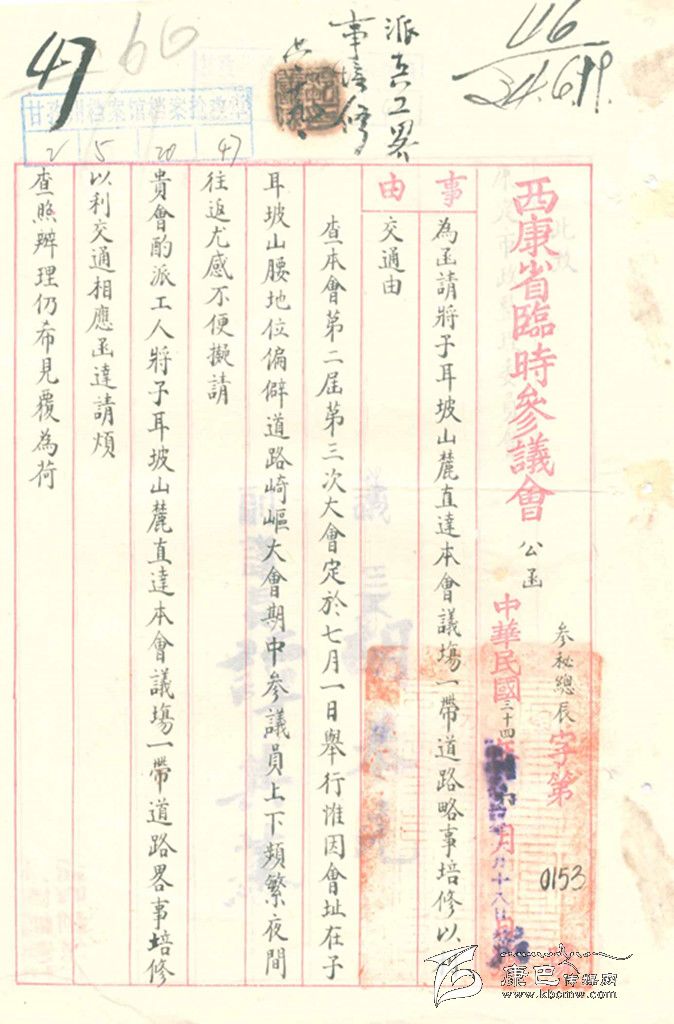 1938年,在子耳坡山腳、如今的州委黨校的地址上,“西康省建省委員會”修建了一幢本意是用來作為接待過往達官貴人的“籌邊別墅”。這是幢一樓一底的木石結(jié)構(gòu)建筑,當(dāng)年是康定城最氣派的建筑。1939年,西康省臨時參議會成立,沒有會址,沒有辦公地點,新成立的西康省政府便把“籌邊別墅”撥給西康省臨時參議會作為會址。但是要從城里走到子耳坡山腳,最近便的道路是從中橋附近轉(zhuǎn)到當(dāng)時的茶店街(現(xiàn)在的建設(shè)路靠東的一段),再沿山往上行。由于是土路,亂石遍地,不好走。于是,當(dāng)時的參議長胡恭先親自動筆,至函“西康省會市政建設(shè)整理委員會”要求整修這條小道。這里的文字檔案記載的就是這件事。