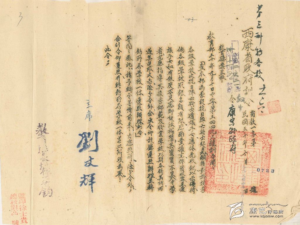 康定縣政府訓(xùn)令:公祭抗日陣亡將士。