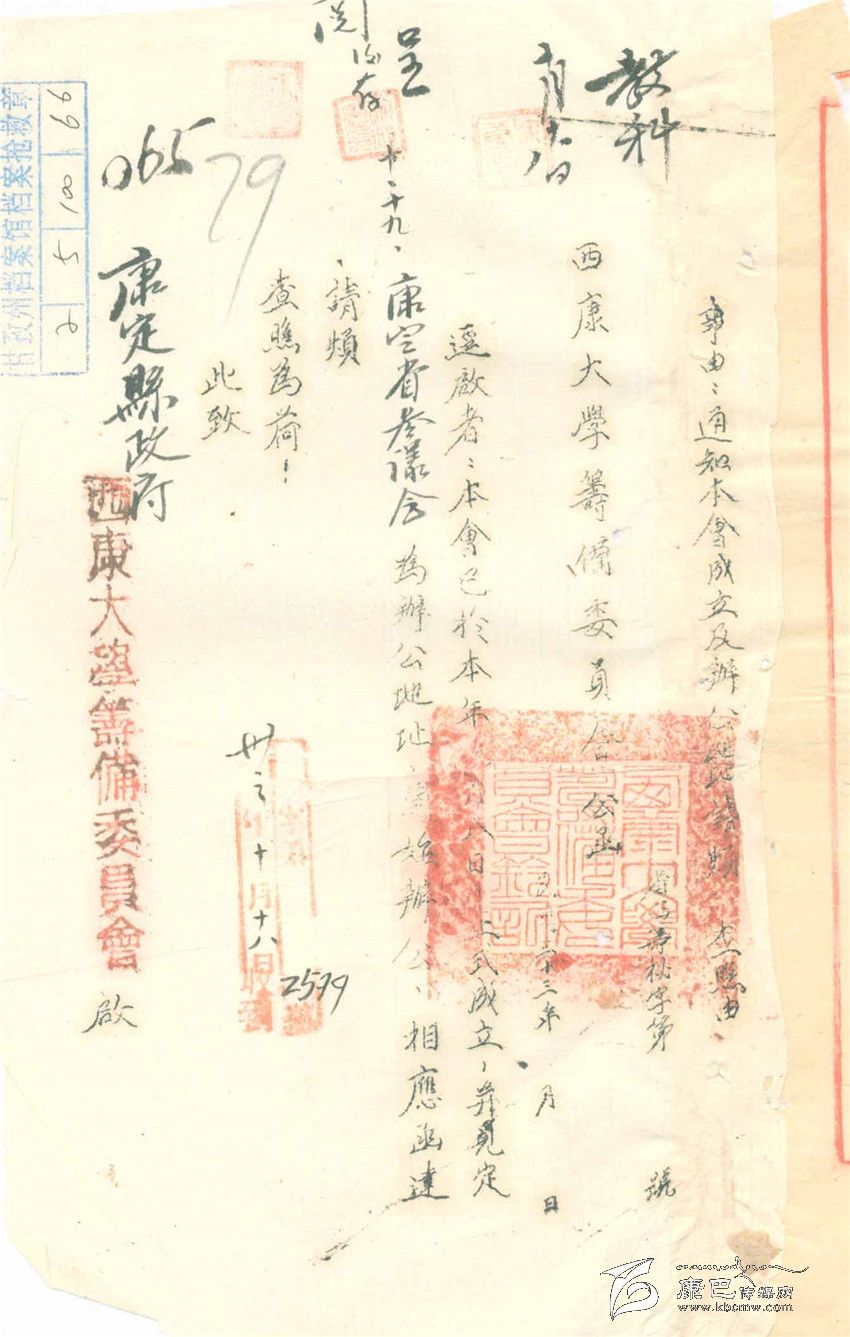 十分遺憾的是,為了找到與這份函件相關(guān)的文字,或者有聯(lián)系的材料,用了近一個(gè)月時(shí)間也沒(méi)有查找出結(jié)果。僅這份材料,得出一個(gè)答案:在民國(guó)33年(即公元1944年),西康大學(xué)籌備委員會(huì)在康定城中成立,并且把辦公地點(diǎn)定在了省參議會(huì)(所在地)。