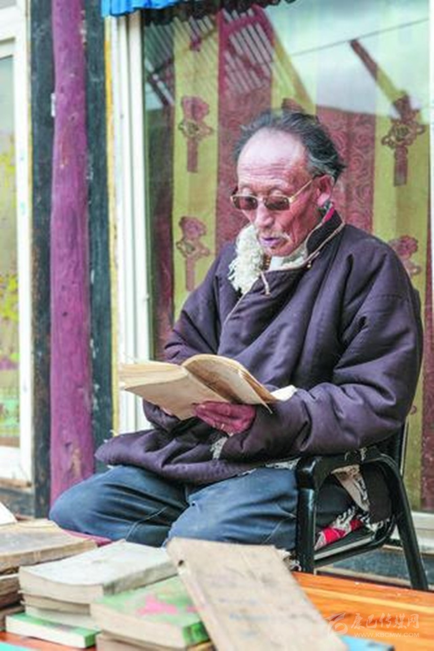 余音繞梁、鳴金收兵,天造地合的佳話叫人回味無窮。面對還沉浸在烽火邊關(guān)與兒女情長中的老人,真有一種不忍打擾的感動(dòng)。幾十本從八十年代到二十一世紀(jì)由西藏、甘肅、青海、四川等民族出版社出版的各種藏文《格薩爾王傳》書籍,雖然有的邊角磨損嚴(yán)重,有的封面封底用塑料薄膜一針一線串起,卻沒有一本掉頁,更不要說有污漬灰塵了,揣摩著那一本本厚薄不一的書籍,如數(shù)家珍般逐一介紹書中的內(nèi)容,就算間隔30多年都還記得買書時(shí)的場景,足見老人對它的情有獨(dú)鐘。