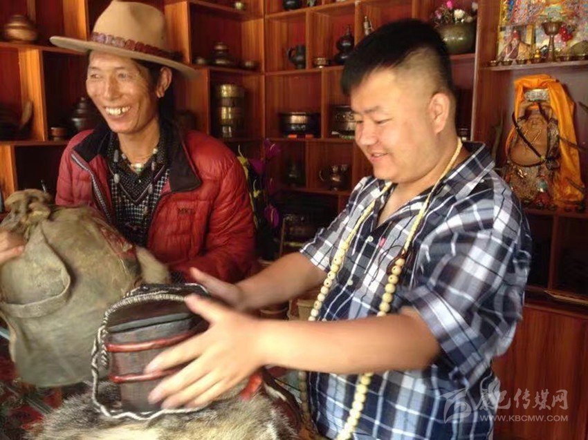 繼續(xù)行走,遇見了一間典雅的古玩店,門楣的橫匾寫著銀白的藏體字:甘康民族用品商行。進(jìn)入店門,正中位置放著一組半高的古木櫥柜,玻璃臺面,里面分放著綠松石、蜜蠟、天珠等老式珠子??繅蛇吺莾山M鏤空博古柜,上面陳設(shè)著舊時(shí)康巴藏人家中日常生活所用的器皿,以黃銅和白銀包邊的馬鞍、酥油茶桶等居多,它們被擦拭得锃亮。細(xì)看,有的器皿邊上還用紙片附著來歷故事。選了一款綠松石山石花卉鼻煙壺的故事來閱讀:2012年,店主馬建在理塘哈依收購蟲草,遇見一位叫洛桑貢布的牧人用這款綠松石鼻煙壺嗅吸鼻煙,見它做工精細(xì),就上前打探。說是早年間,他父親在茶馬互市馱茶,因?yàn)榍趹?,茶商用這款鼻煙壺當(dāng)作犒賞給他了。馬建問他是否愿意出售。他說,任何質(zhì)地的煙粉只要裝進(jìn)這壺里,都會(huì)變?yōu)樯铣似?。他抖出一點(diǎn)湊近馬建鼻孔請他嗅吸,茉莉花的芳香之氣頓時(shí)襲遍了馬建全身。嗅完,他把鼻煙壺放回懷中表示不愿出售。馬建解下手腕上的蜜蠟串珠與他交換,并湊近他耳邊說,以后念經(jīng),不嗅吸鼻煙好不好。他接過串珠搓揉,散發(fā)松脂香氣后,爽快地從懷中取出鼻煙壺給了馬建。再往深處走,腳尖觸到了一張席地鋪展的羊毛藏毯,上面放置著一個(gè)蓄了清水的白釉大缸,內(nèi)中幾枚圓石上幾尾色彩鮮亮的錦鯉聚集一起又分散開去,像一朵曇花那樣忽然。緊接著是一套古木柜組合的老板臺,后方靠墻排列了四把西洋紅木高背椅,上鋪展著做工精細(xì)的花式藏毯,正中鋪蓋著一張白色的獸皮。我走近老板臺,去看上面斜靠的一個(gè)古木相框,白底藍(lán)字記錄著:“甘康民族用品商行,經(jīng)過兩代人的經(jīng)營,從綢布古玩到高端珠寶首飾,現(xiàn)已走過了十八年的歷史。本著誠信經(jīng)營,一直受到康定人民和國內(nèi)外藏寶愛好者的垂愛……”老板臺面玻璃隔板,下面布滿了大大小小的紅珊瑚珠子,長滿了指紋樣的紋路,還有被蟲蝕過的天然痕跡。它們被櫥柜中的熒光燈照著,鮮亮明麗。抬頭,迎面站著一位頭戴白布帽,身穿白襯衫外套藍(lán)色毛坎肩的男子,他手卷一本《古玩》,與我說話時(shí)將它放回到身后的桌面上?!澳茫沂堑曛黢R建,請問您需要點(diǎn)什么?”我說,要一條繩子,就把包裹在紙巾里的知了遞給他,他接過知了湊近櫥柜的熒光燈細(xì)看,溫潤的指尖翻轉(zhuǎn)著知了的翅翼、腹部和頭部。收回手時(shí),他用雙手護(hù)住知了的翅翼,看了我一眼,眼神輕柔而敏感,仿佛護(hù)住了知了生動(dòng)的飛離。