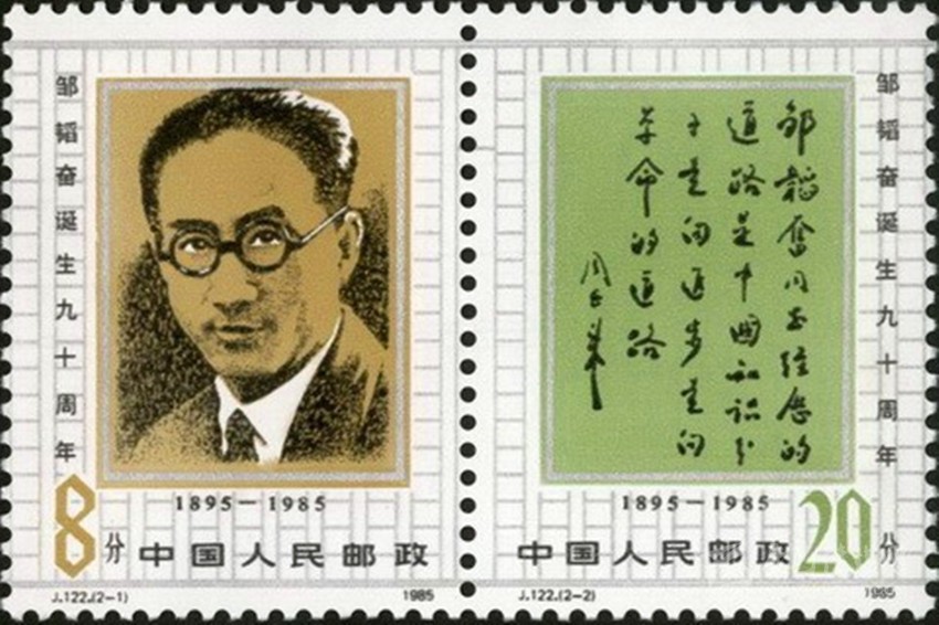 記者是一個承載著光榮與夢想的職業(yè),又是充滿挑戰(zhàn)、需要激情、不怕艱辛、固守責任的行業(yè)。在我國發(fā)行的人物類郵票中,一些堪稱中國紅色記者的人物曾多次出現(xiàn)在方寸之中,其中,最具代表性的是1985年11月5日,原郵電部發(fā)行的J122《鄒韜奮誕生90周年》紀念郵票。該套郵票共2枚,第一枚為鄒韜奮畫像,第二枚是周恩來的題詞。兩枚郵票采用橫連票設計,背景為文稿稿紙,主題鮮明,寓意深刻。