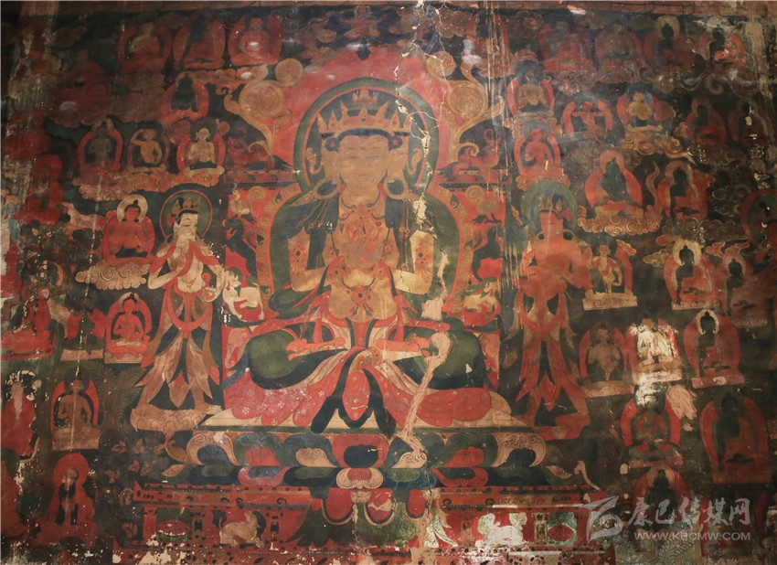 而吉祥天母殿內(nèi)的壁畫雖規(guī)模不及百柱大殿的壁畫大,但殿內(nèi)保存的壁畫歷史更悠久,畫風更獨特,是一座取之不盡用之不竭的壁畫寶庫,是目前當?shù)乇4娴谋诋嫯斨幸?guī)模最大最古老的壁畫之一。