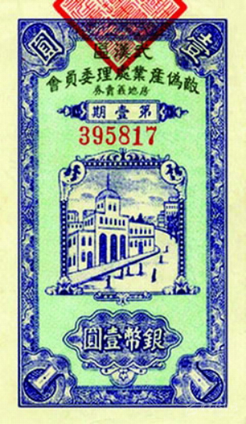 1949年3月,武漢市政府發(fā)行了100萬張彩票,面值都是“銀幣一元”,可以買一張,中獎率是兩萬五千分之一,獎品是位于漢口的別墅。推出彩票“房地義賣券”,以武漢區(qū)敵偽產業(yè)處理委員會名義發(fā)行,票幅高62毫米,闊106毫米,售價為銀幣壹元,計劃發(fā)行100萬枚,計有39幢房屋充作獎品,定于5月10日在漢口當眾搖彩。1949年,正是國民黨政權風雨飄搖之時,因此5月10日的搖彩日也就成了彩票發(fā)行組織者的逃命日,六天后武漢解放,那“房地獎”未能兌現(xiàn)。