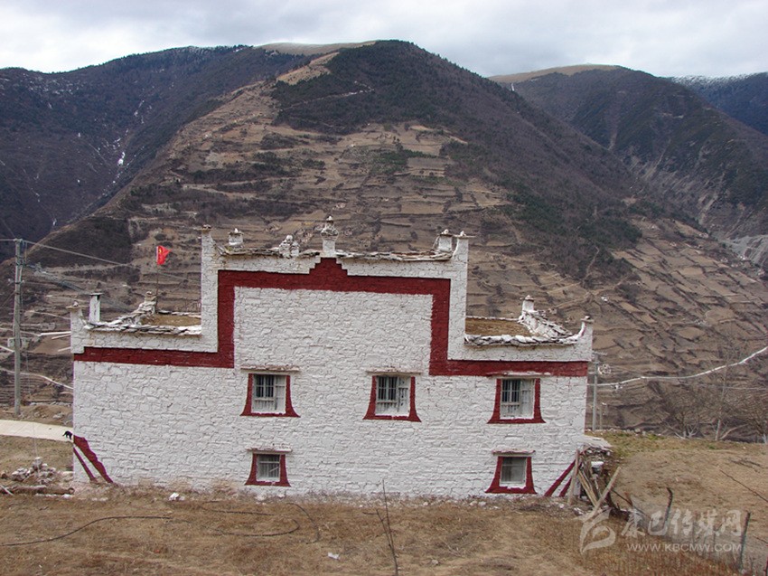 宅龍,是一座隱藏于小金谷中的小村寨。它四面環(huán)山,風(fēng)景絢麗。從一座名為“班咂呷”的山峰始,一條筆直的小徑將整個(gè)村寨分成了上下兩部分。小徑以上的村寨稱為“適度”意為“上宅龍寨子”,小徑以下的村寨稱為“適諾”,意為“下宅龍寨子”。乾隆年間,在抗擊廓爾喀的戰(zhàn)爭(zhēng)中,由于參戰(zhàn)的宅龍屯嘉絨士兵奮勇殺敵,屢立奇功,為此受到了清政府的嘉獎(jiǎng)。帶兵的兩位頭人也因此被委以“守備”“千總”一職。守備和千總分而管理上下宅龍兩個(gè)寨子。