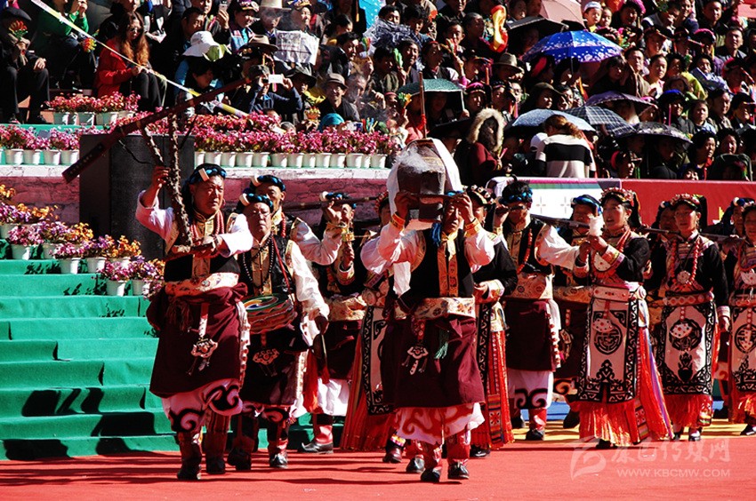 槍舞,嘉絨語中稱為“訥沖呷兒”,主要是在祭祀、集會、節(jié)日時表演的一種近似于戰(zhàn)術(shù)的舞蹈。在舞蹈中,舞者圍成一個圓圈,手持明火槍,明火槍,是最早的一種真正適于在戰(zhàn)場上為軍事目的使用的火槍。槍膛為一根圓柱形的鐵筒,筒口直徑為三厘米左右,在槍膛底部,有一個小圓孔伸出槍管,為導(dǎo)火管。如耳朵狀,因此也稱為槍耳,主要是用來點(diǎn)火的地方。圓筒固定在堅(jiān)硬的木托頂端。這種輕火器或者說小型火炮使用的是形狀不規(guī)則的彈丸,即不大的實(shí)心彈,它緊貼大粒火藥制成的裝藥,借緊挨導(dǎo)火孔的火繩發(fā)射。